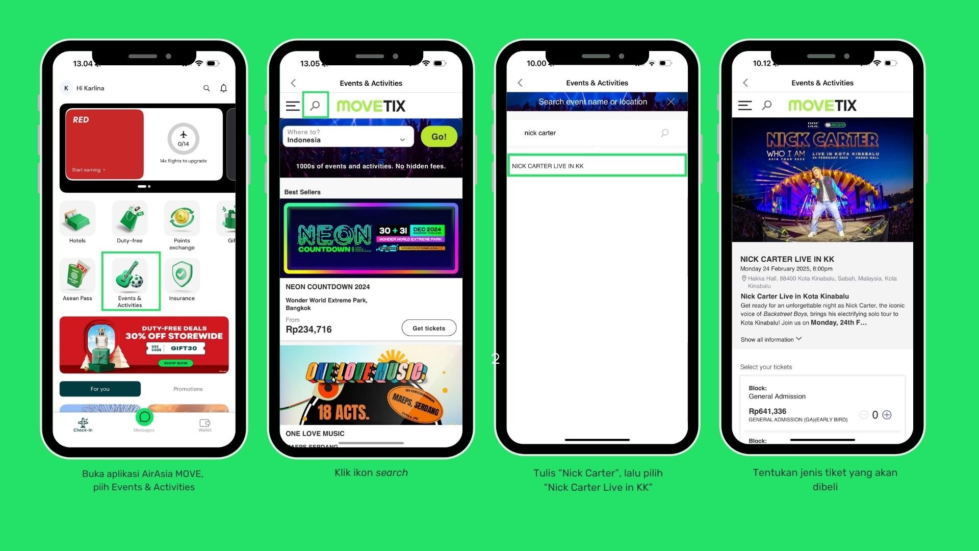Harga tiket dibanderol mulai dari Rp641 ribu untuk kategori umum, dan Rp1,055 juta untuk kategori premium. Pembelian dapat dilakukan melalui ikon 'Events & Activities' di aplikasi AirAsia MOVE.