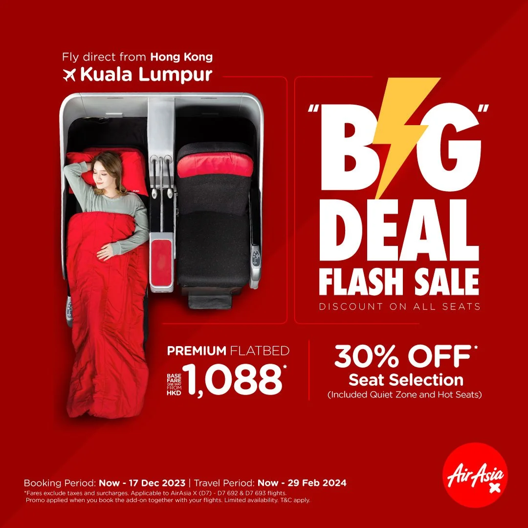 In celebration of this inaugural flight, AAX is offering a special flash deal to enable everyone to fly further with better value from Hong Kong to Kuala Lumpur where guests can book the award-winning Premium Flatbeds from HKD1,088*, exclusively on airasia Superapp and the website.