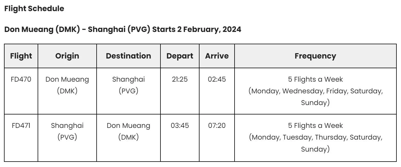 BANGKOK, 18 December 2023 - Thai AirAsia (FD) has launched a new route, flying direct from Don Mueang Airport in Bangkok to the city of Shanghai, China for the first time ever. Operated with an Airbus A320, the approximately 4-and-a-half-hour flight is set to begin service 2 February 2024 and will be available 5 times a week (every Monday, Wednesday, Friday, Saturday and Sunday) with a promotional fare starting from only 3,355 THB per trip. Book 20 – 31 December 2023 for travel from 2 February – 30 March 2024.