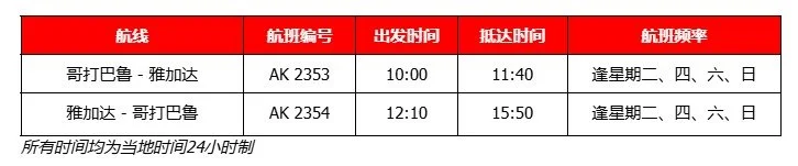 为庆祝新航线开通,亚航推出哥打巴鲁至雅加达的特价促销机票,全包单程票价最低199马币*起。雅加达至哥打巴鲁的单程票价则全包单程票价709,000印尼盾*起。该特价机票将从即日起至3月22日,通过AirAsia MOVE应用程序及airasia.com开放预订,出发日期为2026年6月16日至2027年3月27日。