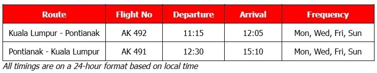 Flight Schedule between Kuala Lumpur (KUL) and Pontianak (PNK):