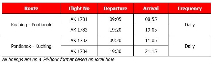 Flight Schedule between Kuching (KCH) and Pontianak (PNK):