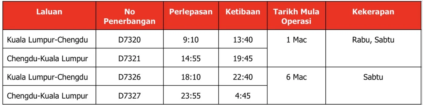 Melengkapi penyambungan semula destinasi jarak dekatnya, AirAsia X Malaysia (D7) akan menyambung semula laluan dari Kuala Lumpur ke Shanghai, Hangzhou dan Chengdu dengan 10 penerbangan mingguan bermula 1 Mac 2023.