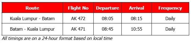 The new route will provide travellers with greater convenience and improved connectivity between Kuala Lumpur and Batam, a fast-growing hub for business and tourism while strengthening links across key destinations in Malaysia and Indonesia.