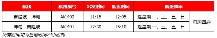 往返吉隆坡(KUL)与坤甸(PNK)的航班列表如下: