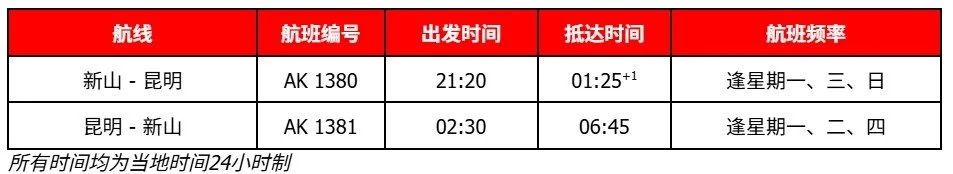 为庆祝这一全新航线的开通,亚航特推出了特级优惠,即从新山飞往昆明的航班全包单程票价只需469令吉*起,而昆明飞往新山的回程航班则只需全包单程678人民币*起。