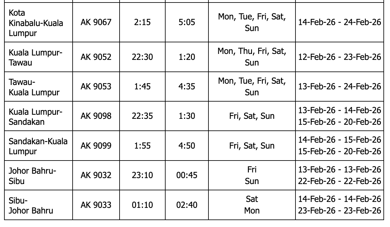 In the coming Chinese New Year period, flights to Sarawak are available at RM328 all-in one way, flying from Kuala Lumpur to Kuching, Miri, Sibu and Bintulu, while flights to Sabah are available at RM398, to Kota Kinabalu, Tawau and Sandakan. Book now until 24 February 2026, for travels between 13 to 24 February 2026.