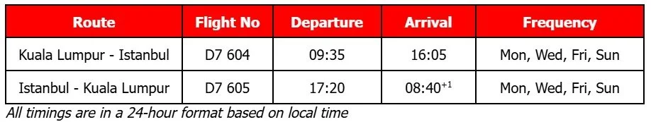 The new service between Kuala Lumpur and Istanbul will commence on 14 November 2025 with four weekly flights, strengthening AAX’s global footprint and offering more affordable travel options to one of the world’s most iconic destinations.