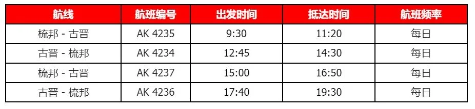 往返梳邦(SZB)与古晋(KCH)的航班列表如下: