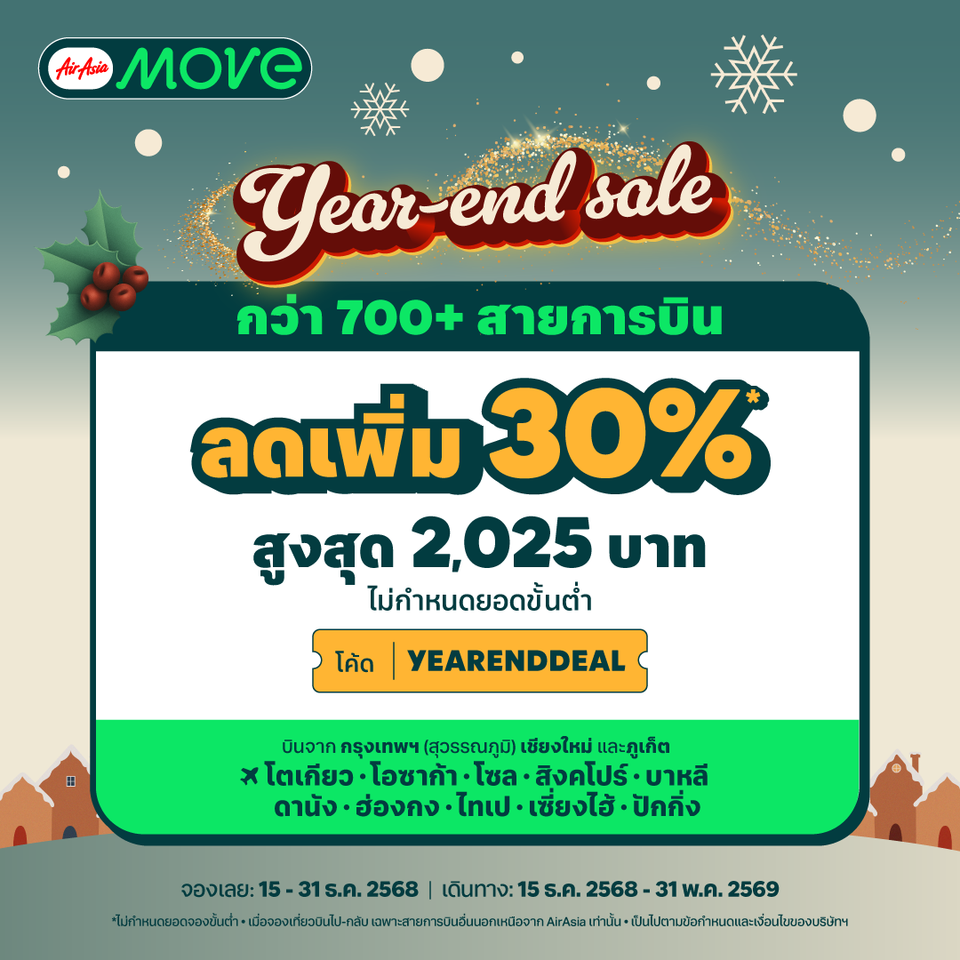 AirAsia MOVE ปล่อยโปรฯ แรงส่งท้ายปี “YEAR END GETAWAY” แจกโค้ดลดทุกสายการบิน 30% สู่ 10 เส้นทางฮิตทั่วเอเชีย