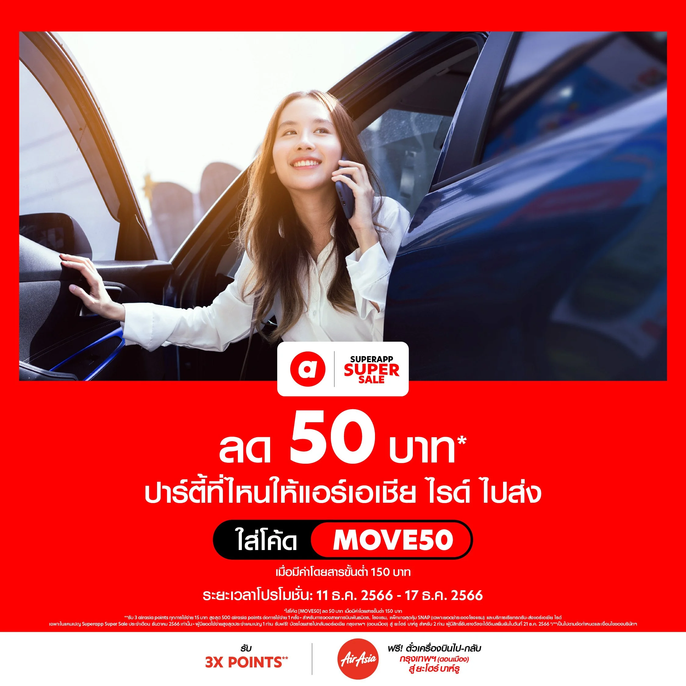 airasia Superapp (กำลังจะเปลี่ยนชื่อเป็น airasia MOVE เร็วๆนี้) ซูเปอร์แอปด้านการเดินทางและการท่องเที่ยวครบวงจรชั้นนำในภูมิภาคอาเซียนตั้งแต่การเดินทางทางอากาศจนถึงภาคพื้นดิน แจกดีลใหญ่ประจำเดือนส่งท้ายปี ! ลดทั้งแอปสูงสุด 50%* ไม่ว่าจะเป็นส่วนลดสุดพิเศษทั้งจากสายการบินพันธมิตรชั้นนำมากกว่า 700 สายการบิน โรงแรมที่พักทั่วโลกการันตีราคาถูกสุด แพ็กเกจตั๋วเครื่องบินพร้อมที่พัก บริการเรียกรถรับ-ส่ง จองตั๋วรถโดยสาร รถไฟ เรือเฟอร์รี่ ประสบการณ์จองโต๊ะร้านอร่อย โดยรับ 3 airasia points สำหรับการใช้จ่ายทุก 15 บาท** พร้อมดีลพิเศษ จาก VISA และ ฟรี! บัตรโดยสารแอร์เอเชีย กรุงเทพฯ (ดอนเมือง) สู่ ยะโฮร์ บาห์รู 11 - 17 ธ.ค. 2566 ( สมาชิก airasia ช้อปคุ้มก่อนใคร 24 ชม. 10 ธ.ค. 2566 เริ่ม 10.00 น.)