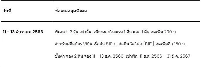 ระยะเวลาโปรโมชั่น: 11 - 24 ธ.ค. 2566 ระยะเวลาเดินทาง: 11 ธ.ค. 2566 - 31 มี.ค. 2567