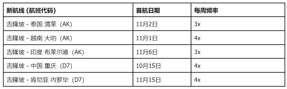 亚航将于第四季度推出新航线 促吉隆坡国际机场成为全球低成本航空超级枢纽